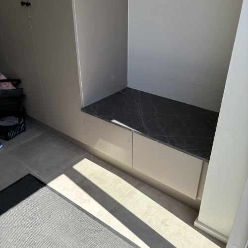Vi sørger for, at skabe, fronter og bordplader monteres præcist, så køkkenet fremstår gennemført og fungerer optimalt i hverdagen.